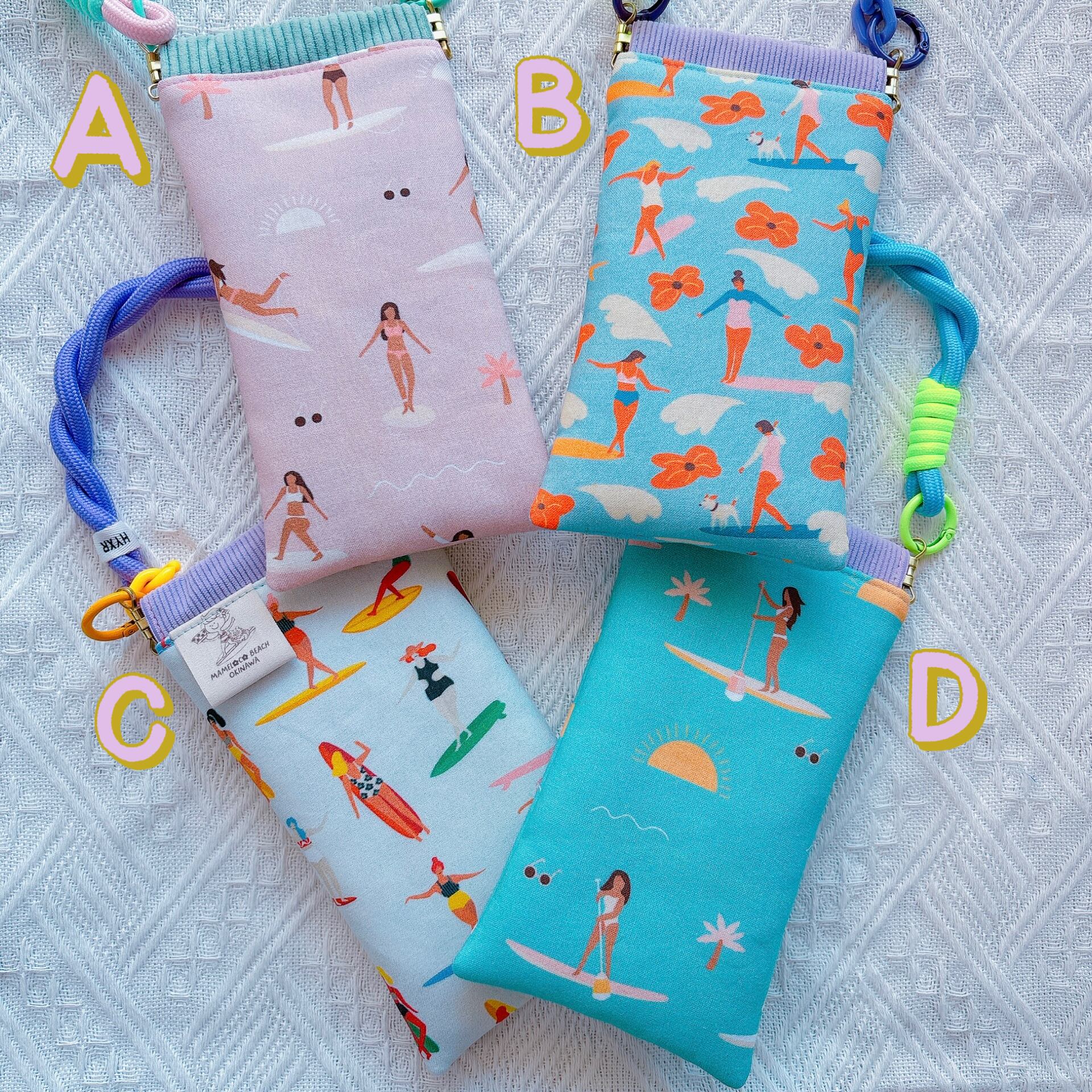 今回はサーファーガールの生地をたくさんサングラスポーチにしました。